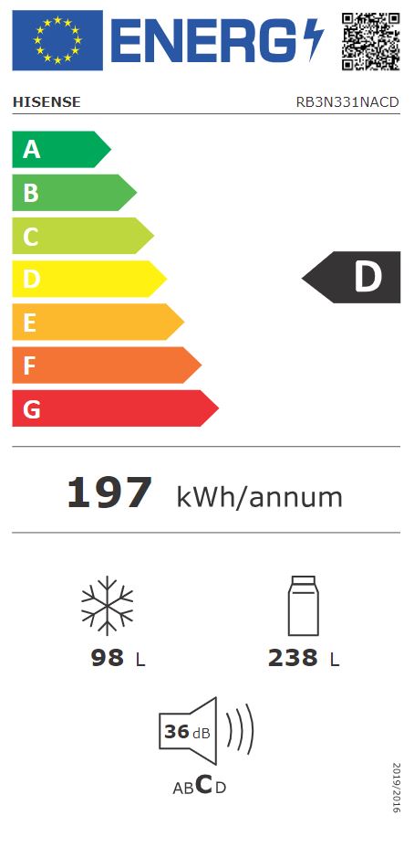 HISENSE - Frigorifero combinato RB3N331NACD Classe D 336 lt-Inox