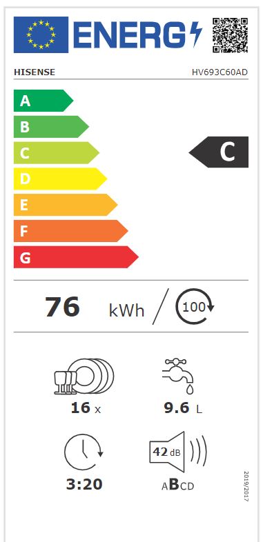 HISENSE - Lavastoviglie HV693C60AD Classe C 16 coperti-Bianco