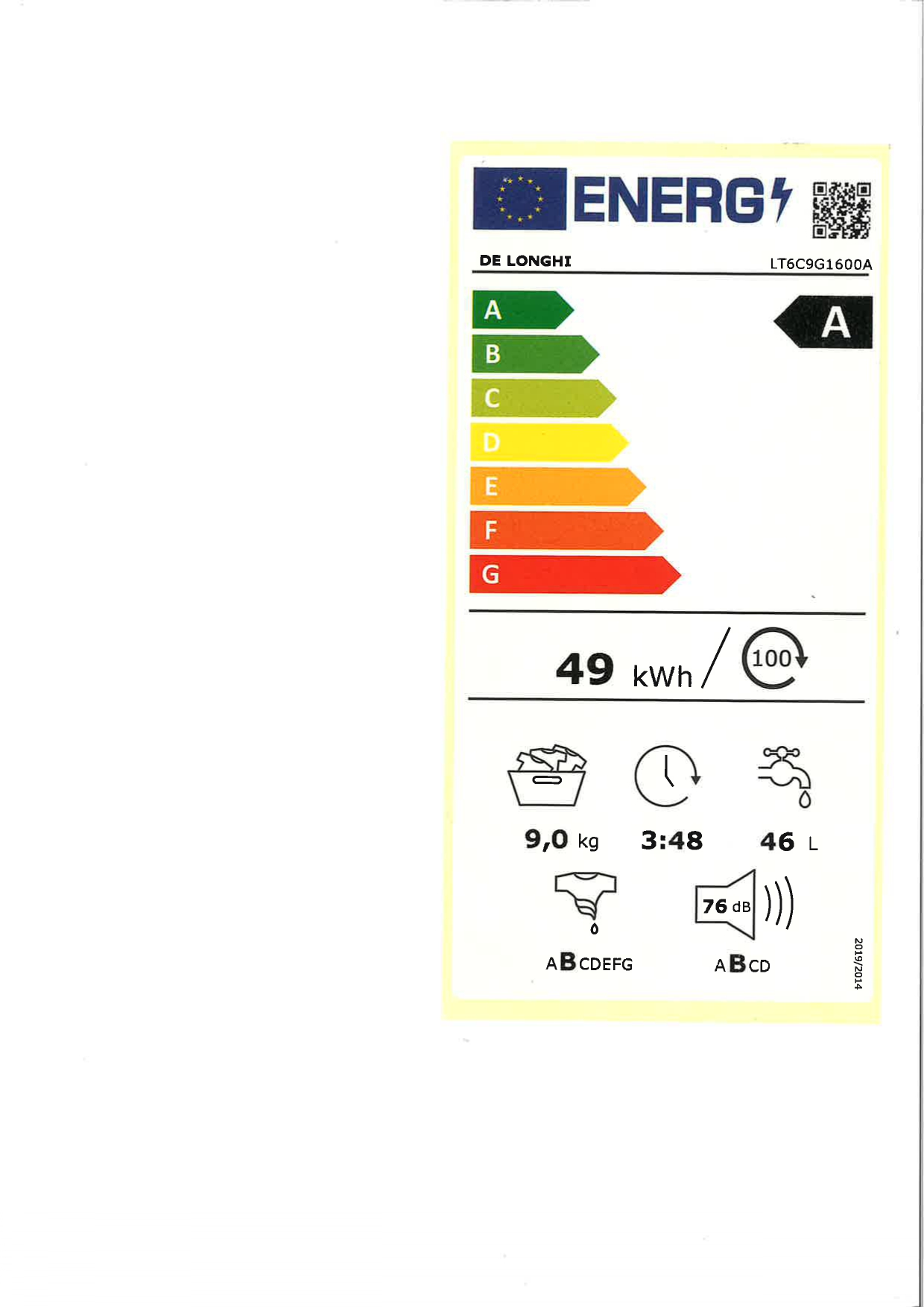 - Consumo ponderato di energia per 100 cicli (kWh) 49