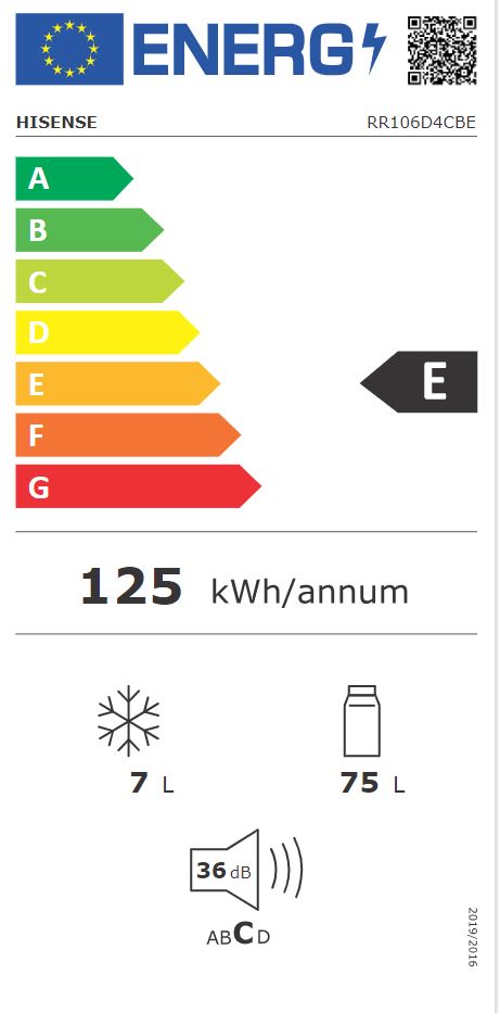 HISENSE - Frigorifero 1 porta RR106D4CBE Classe E 82 lt-Nero