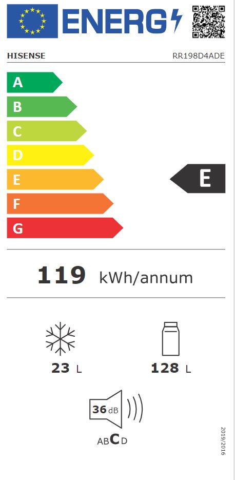HISENSE - Frigorifero 1 porta RR198D4ADE Classe E 151 lt-Silver