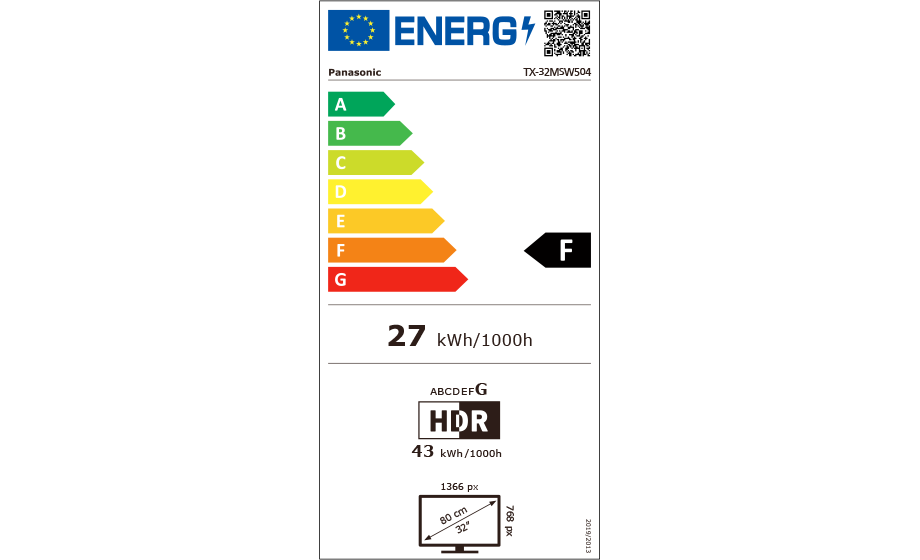 - Consumo di energia in modalità HDR per 1000h (kWh) 43